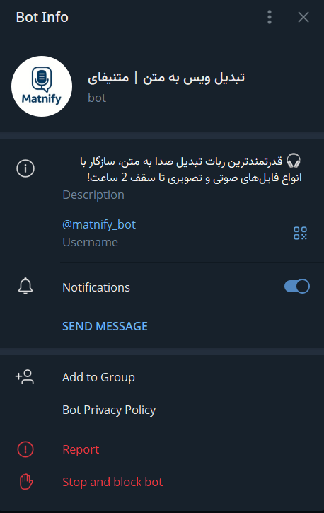 رباتهایی مانند متنیفای (@matnify_bot) و بیناویرا (@binavira_stt_bot) از بهترین گزینهها برای تبدیل ویس به متن فارسی و انگلیسی هستند. این رباتها قابلیت تبدیل فایلهای صوتی تا چند ساعت را دارند و علاوه بر تبدیل، امکان خلاصهسازی و تولید نقشه ذهنی محتوا را نیز فراهم میکنند.