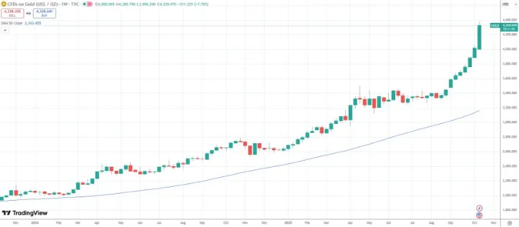 ارزش بازار بازار طلا برای اولینبار به رکورد ۳۰ تریلیون دلار رسید. این جهش بیسابقه یعنی طلا اکنون ۱۴٫۵ برابر بزرگتر از ارزش بازار بیتکوین است که حدود ۲٫۱ تریلیون دلار ارزیابی میشود.