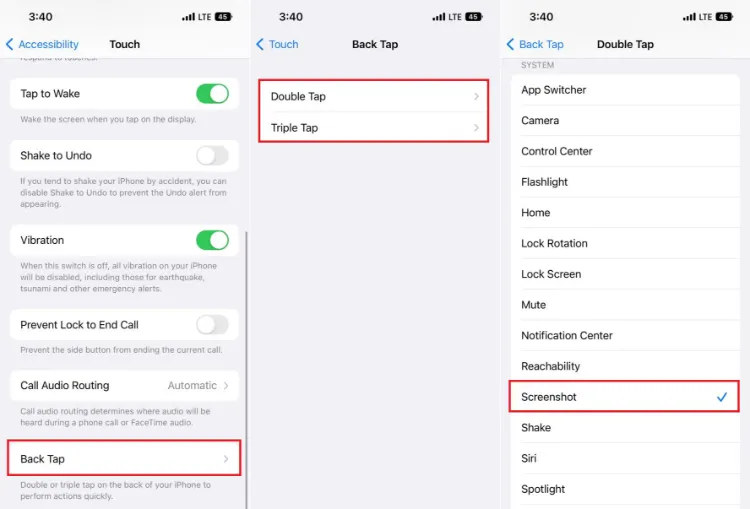 فعالسازی اسکرین شات آیفون با Back Tap: